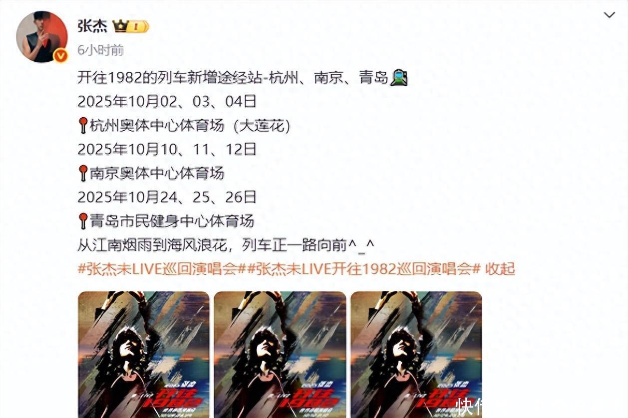 9日中午歌手张杰官宣杭州演唱会时间开的列车新增途经站-杭、03、04日杭州奥体中心体育场(大莲花)