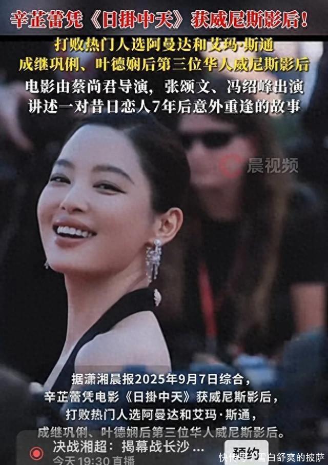 05 华语电影,再创辉煌辛芷蕾的这次获奖,对华语电影而言意义非凡。威尼斯电影节作为世界三大国际电影节之一,其奖项含金量毋庸置疑。年巩俐《秋菊打官司》获奖,年叶德娴《桃姐》折桂,再年辛芷蕾《日掛中天》登顶,华语女演员整整三代人在国际舞台上的传承与突破,见证了中国电影与世界对话的能力。
