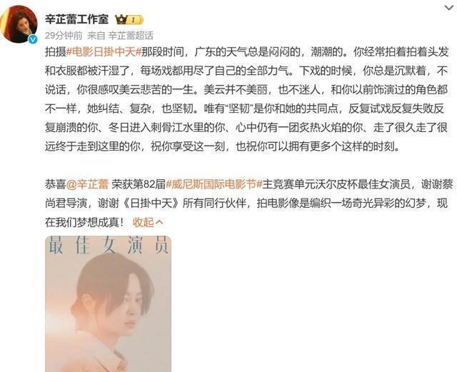 重磅!辛芷蕾威尼斯封后!含泪说出那句被嘲笑了十几年的话,全网刷屏……