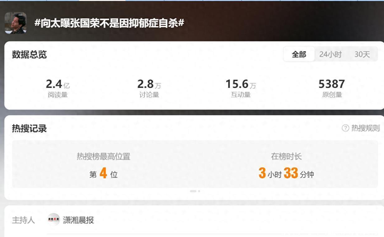 9月8日,一向活跃在互联网上的港娱大佬向太陈岚,又一次出现在各大热搜榜上。这次,向太登上热搜的原因是,再次提及了张国荣的死因。在2个月之前,港娱老牌明星王晶,同样因提及张国荣死因而登上热搜。向太、王晶纷纷对二十多年前旧人的旧事重提,没太看出情真意切,倒折射出了港娱的全面崩塌、后继乏力。