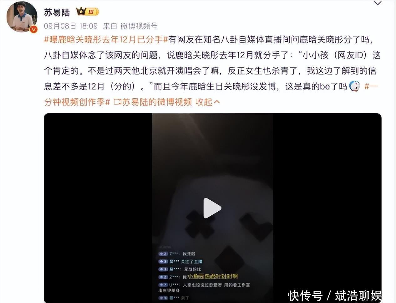 名八卦媒体“刘大锤”在直播间回应,鹿晗关晓彤在去年12月份就已经分手,但双方都没有正式官宣。可能觉得冷处理,不想过多讨论