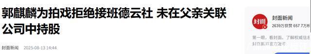 封面新闻(郭麒麟为拍戏拒绝接班德云社未在父亲关联公司中持股2025.08.13)